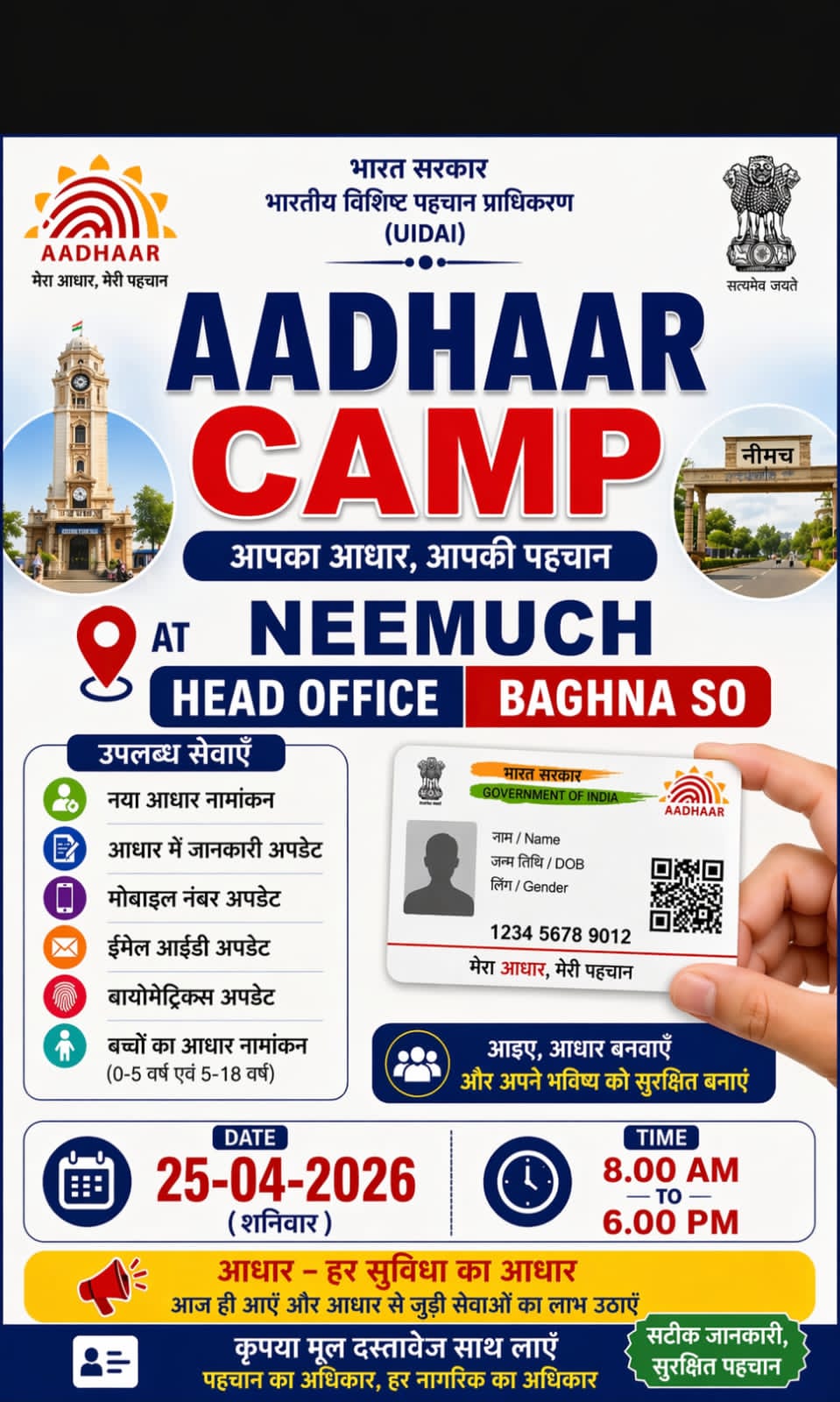 рдордВрджрд╕реМрд░ рдореЗрдВ рдкреЛрд╕реНрдЯ рдСрдлрд┐рд╕ рджреНрд╡рд╛рд░рд╛ рдЖрдзрд╛рд░ рдХрд╛рд░реНрдб рд╕рдВрдмрдВрдзрд┐рдд рд╕реЗрд╡рд╛рдУрдВ рдХреЗ рд▓рд┐рдП рд╡рд┐рд╢реЗрд╖ рдЕрднрд┐рдпрд╛рди 25 рдЕрдкреНрд░реИрд▓ рдХреЛ*